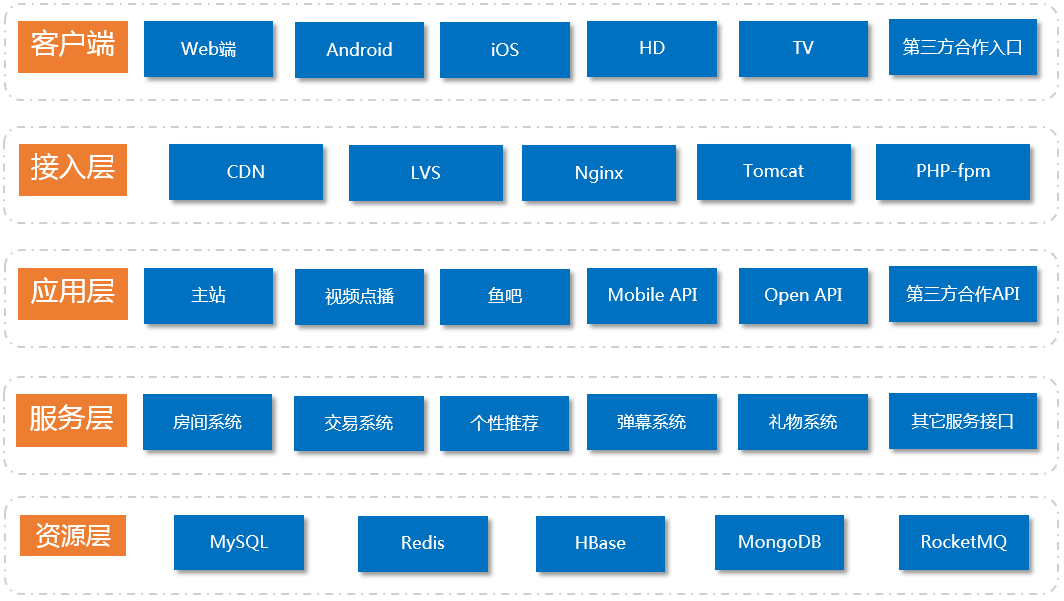 斗鱼网站2014年上线至今,顺应直播行业趋势的发展,完成对交易系统、会员系统、统一登录系统、弹幕系统、任务系统的重构,并持续对架构进行优化,针对客户使用体验拆分系统、提高研发效率、强化系统稳定性和扩展性。优化主要针对以下三个方向: