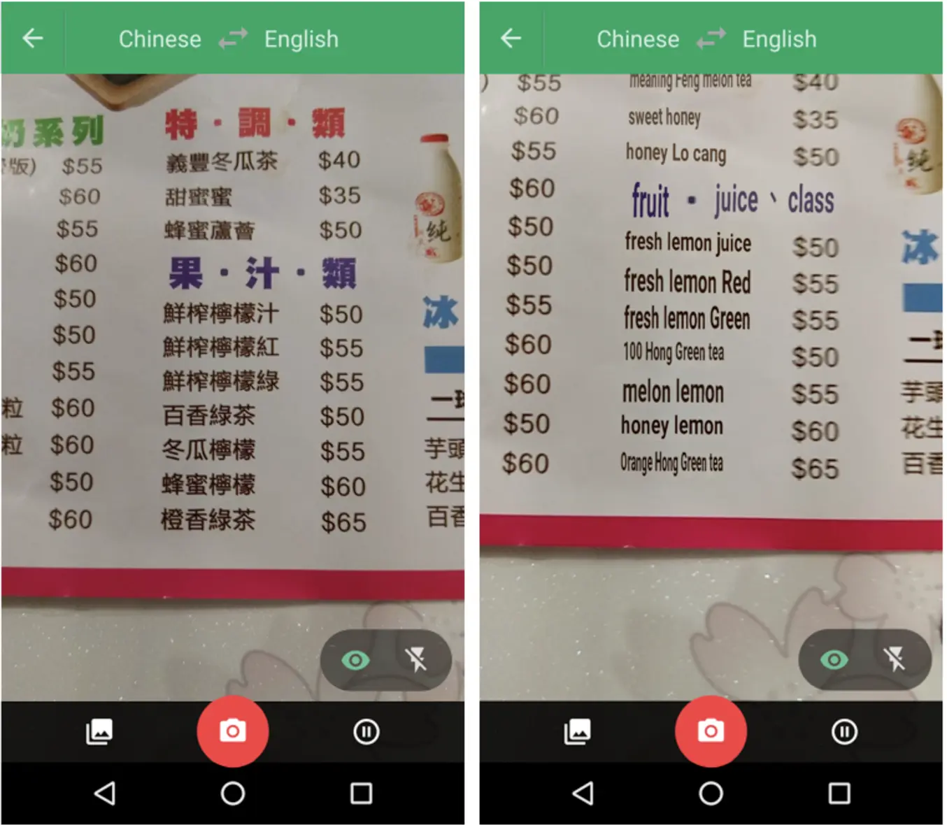 谷歌翻译使用卷积神经网络,实时完成饮料菜单上的英文翻译。