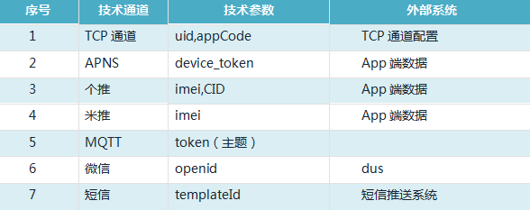 如果是多个通道推送,需要确认是并行推送(比如资产变化,同时通过APNS、微信推送)或顺序推送(根据ACK情况、如速运订单,优先通过TCP通道推送,如果规定时间没有收到ACK,则通过个推或米推推送)。
