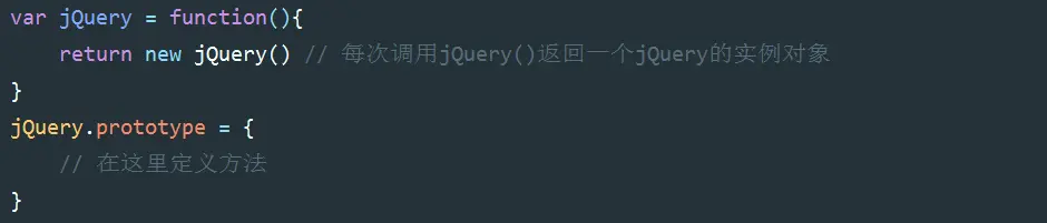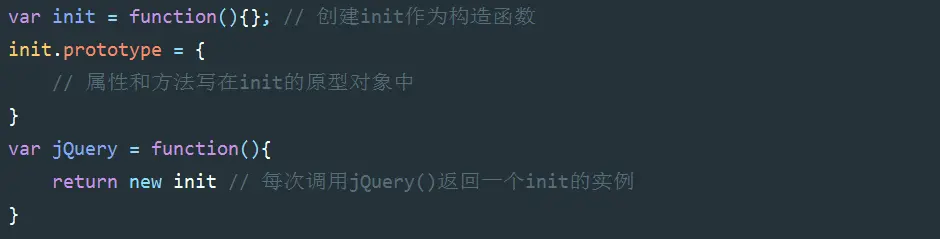 这么做技术上并没有什么问题,但是jQuery的作者并没有这么做,可能是出于某种技术洁癖或者我暂时不清楚的原因,init被定义在了jQuery函数的原型中: