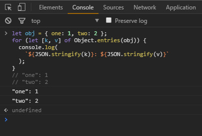 - for (let [k, v] of Object.entries(obj)) {