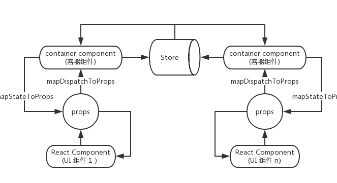 React-Redux 将组件分为两大类,UI组件和容器组件。UI组件只负责UI的呈现,而容器组件用来管理数据和事件。