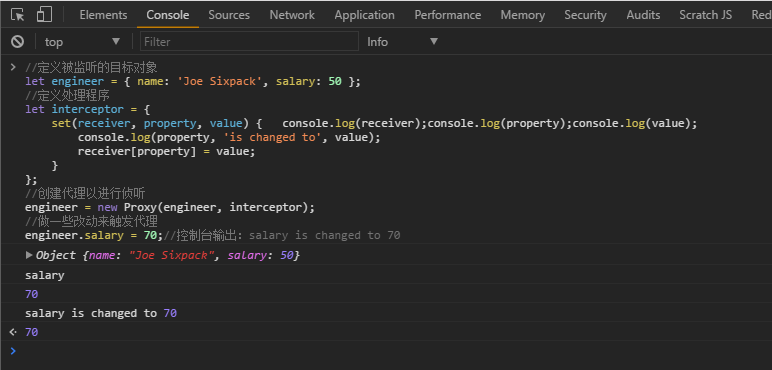 engineer.salary = 70;//控制台输出:salary is changed to 70