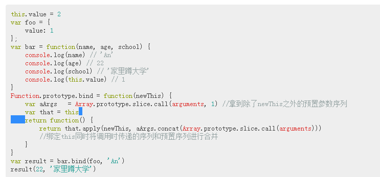 bindFoo(); // 1关于指定 this 的指向,我们可以使用 call 或者 apply 实现,关于 call 和 apply 的模拟实现,可以查看《JavaScript深入之call和apply的模拟实现》。我们来写第一版的代码: