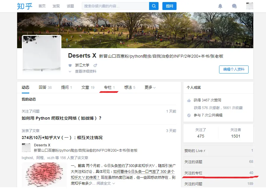 前两个问题倒是很好解决,只需爬取关注列表,分析下用户信息,也就心里有数了;但知乎上有多少类似主题的优质专栏,却是个不好回答的问题。