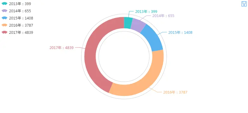 原本以为上文数据一览里时间栏是专栏的开通时间,于是绘制了下各年份的情况。之后才发现这部分应该是爬虫入口的用户关注专栏的时间,似乎啥也说明不了......不管了,聪明的人看不到这张图!