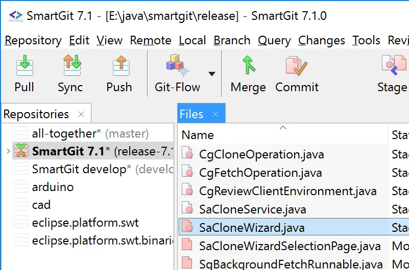 SourceTree:笔者日常使用的一个图形化的 git 增强工具,而最好用的功能就在于它集成了 GitFlow,让开发者可以更简单、更规范的去做一些 git 操作;另外它还提供了更友好的 merge 界面,但是操作起来不是很顺手,因为它只支持整行删除;