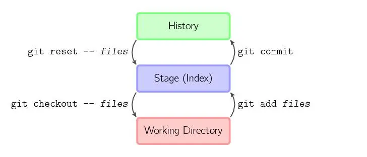 这个问题同样也需要先了解 git 仓库的三个组成部分:工作区(Working Directory)、暂存区(Stage)和历史记录区(History)。