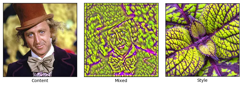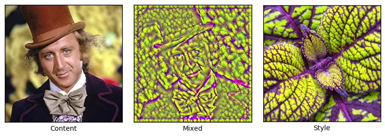 defplot_images(content_image, style_image, mixed_image):# Create figure with sub-plots.
