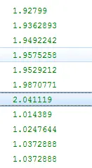 } 当进行放大时它的输出结果为:从中可以看出getScaleFactor()返回的值由小变大,直到大于2后又从1开始变大。这是因为,当缩放因子(getScaleFactor()的返回值)小于2时,onScale()返回的是false,此时detector认为本次缩放尚未结束,所以再次计算缩放因子时仍旧以上次结束时为基准,这样就导致了手指外移时缩放参数越来越大;当达到2后,本次缩放结束,再次获得缩放因子时的基准就变成刚刚结束的位置了,因此,获取的缩放因子会猛然变小(因为手指外移,执行的是放大操作,所以缩放因子会大于1)。