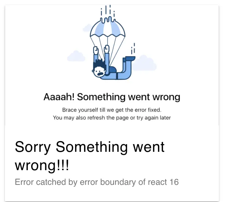 但现在有了错误边界,我们可以捕获这些错误,并渲染一个后备界面。比如下面这个界面: