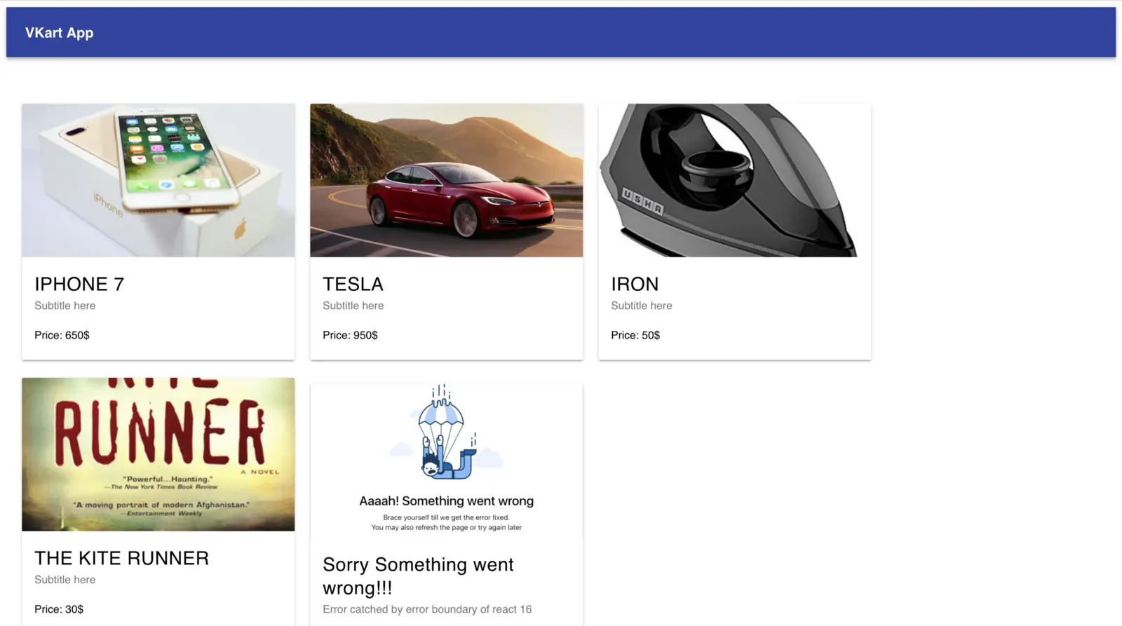 注意最后一个产品卡,那里的模板可以看到有个什么错误。靠React 16的错误边界功能,我们能够将一个后备界面模板插入到那个特定的组件中去,然后整个程序仍然能正常渲染。