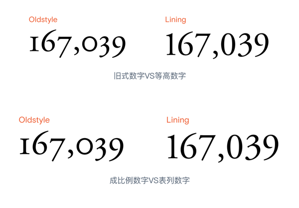 ▲ 数字选择:采用等高表列数字(高度一样,垂直对齐)。