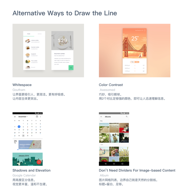 设计一个干净的UI,也意味着去掉所有不必要的视觉元素,包括去掉那些没必要的,只占地方的分割线。