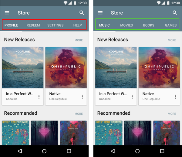 - 切换时,使用滑动动效。用动效表示几个页面是并排关系的。滑动的动效还引导用户使用滑动手势在tab之间切换。