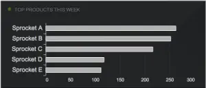 The bar chart is one of the best ways of visualizing single (or multiple) series of data. And yet, because it’s such a simple solution, many people either overlook it in favour of something more elaborate or implement it in such a way as to reduce its impact (for example making it 3-dimensional). In the example above, the bar chart is displaying ‘top products this week’ using a horizontal layout. It’s instantly clear that Sproket A is the best seller and that Sproket E sold fewest. Nothing detracts from the important message.