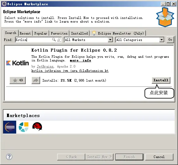 Eclipse本身并不支持Kotlin,使用Eclipse编译、运行Kotlin需要安装插件。