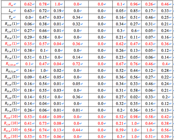 为以上的6个基本变量。我们计算前1个,5个和10个交易日的变化率,共得到18个特征变量。在下面的分析中,我们将用这些变量的英文首字母作为下标,例如,