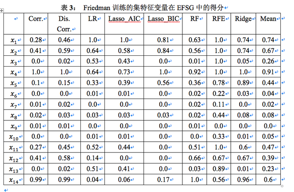 为引起多重共线性项。使用EFG对这个训练集进行计算得到表3:
