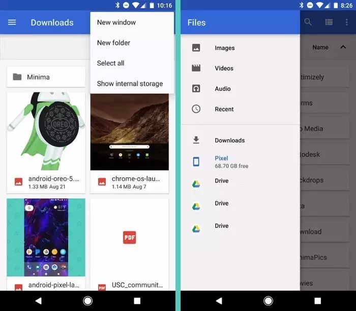 Android Oreo 的文件管理器有一些新的选择,包括显示您的完整的内部存储的能力,并在应用程序内部打开本机文件管理器。它几乎与第三方文件管理器一样强大,它允许基本的浏览和文件操作 , 这对大多数人来说是足够使用的。