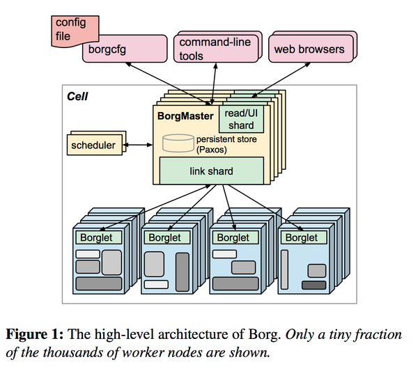 在数据中心管理方面,Google绝对是走在最前面的互联网公司,毕竟数据中心规模摆在那里。今天我们来看一下Google的内部大型集群管理系统,Borg,是如何运作的。原文在这里 http://delivery.acm.org/10.1145/2750000/2741964/a18-verma.pdf?ip=199.201.64.2&id=2741964&acc=OA&key=4D4702B0C3E38B35%2E4D4702B0C3E38B35%2E4D4702B0C3E38B35%2E5945DC2EABF3343C&CFID=821467408&CFTOKEN=85908090&__acm__=1508654694_a91a706f1002f46e69bca69f7f540b03。这个大型集群管理系统算是Kubernetes的前身,有兴趣知道Kubernetes具体信息的可以看这里( Kubernetes)。