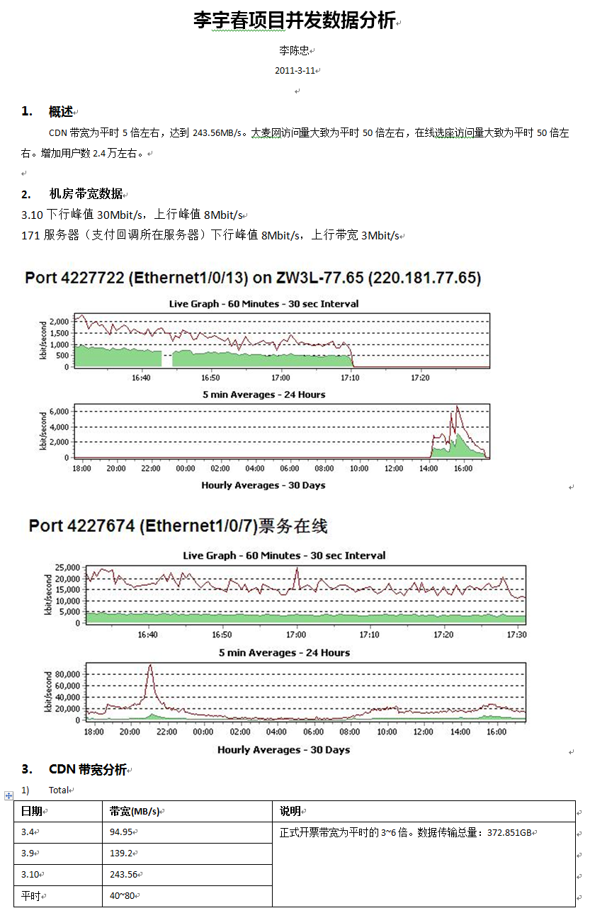 5)抢票前机房设备巡检:某次抢票,某台服务器的水晶头松了,数据流量全部走了外网系统超级慢……
