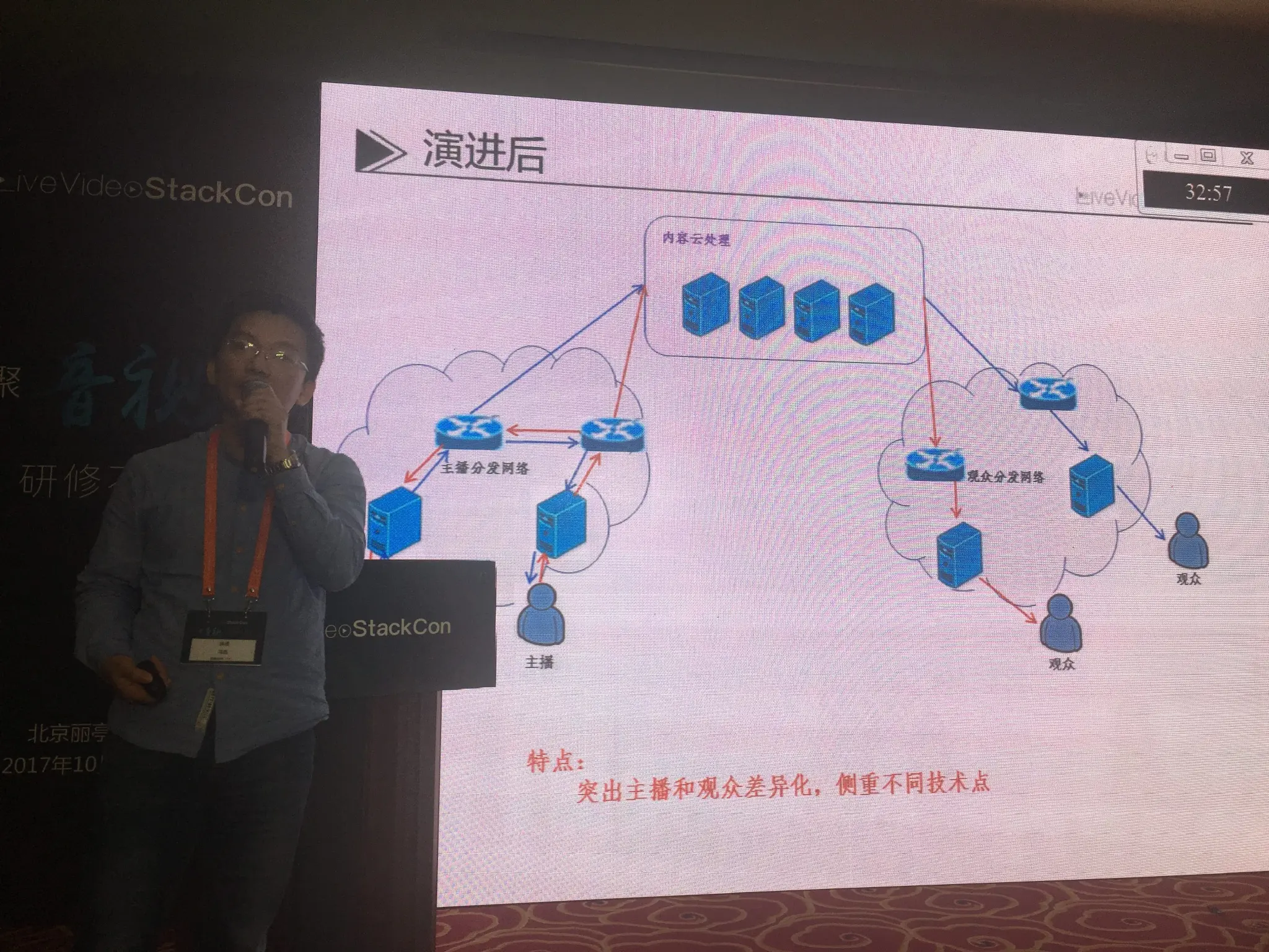 - 架构演变后:突出主播和观众差异化,侧重不同技术点
