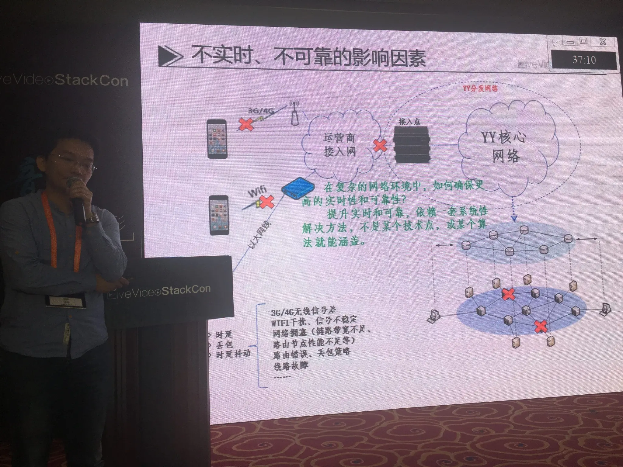 接着介绍了不实时、不可靠的因素。其中包括:时延、丢包、时延抖动。