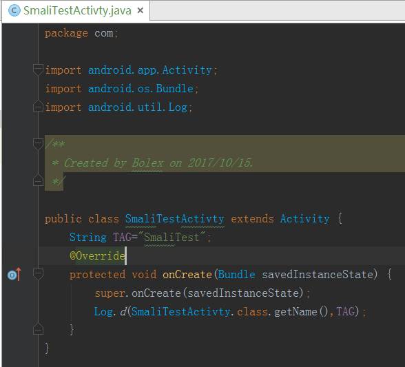 这个步骤以后,我们就可以愉快的将任何java代码在androidStudio中直接转换成smali来学习里。步骤如下。