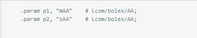 表示接收两个入参都是AA对象,并标记寄存器p1和p2