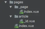 ]对于 article-id 这个路由,路径中带有 :id? 参数,表明这是一个可选的路由,如果要将其设为必选,则必须在 article 的目录下添加 index.vue 文件。