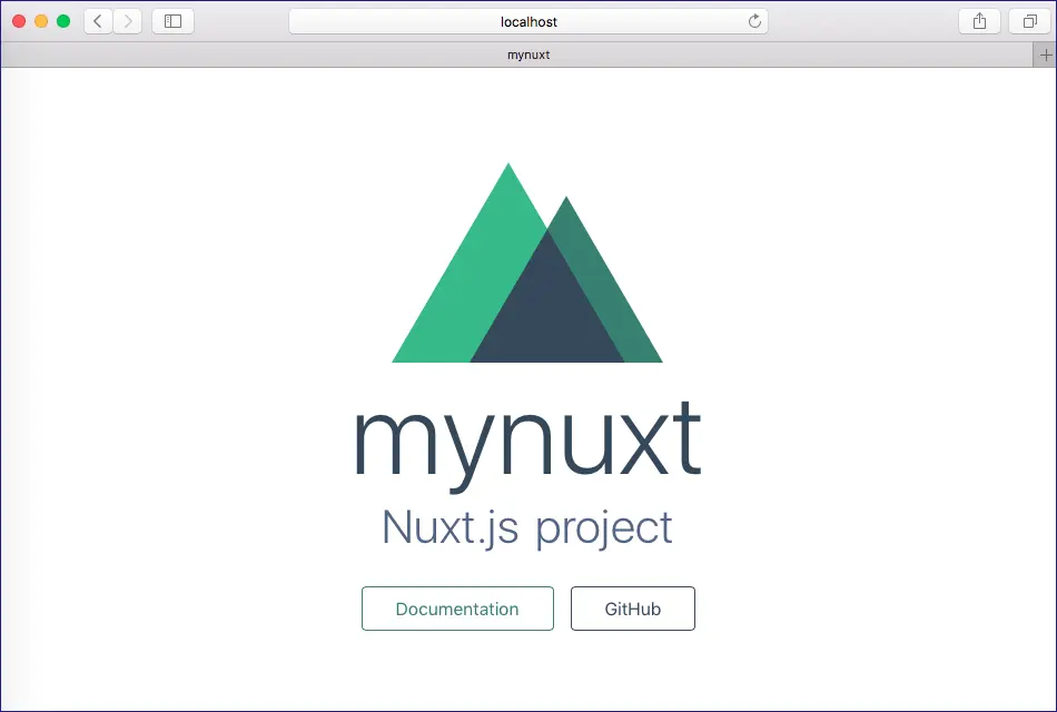 npm run devNuxt.js 会使用 3000 端口运行服务,在浏览器中输入 http://localhost:3000 就可以看到一个带有 Nuxt.js 的 logo 的原始的页面了。