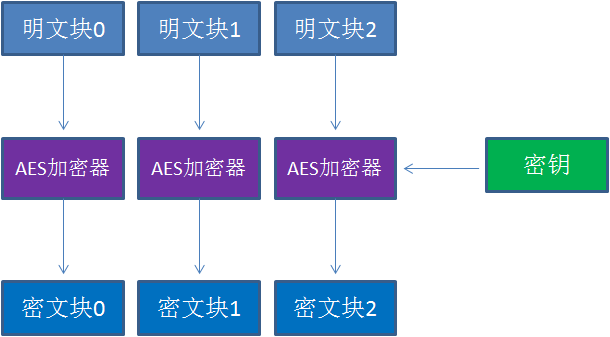 ECB模式(Electronic Codebook Book)是最简单的工作模式,在该模式下,每一个明文块的加密都是完全独立,互不干涉的。