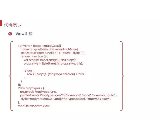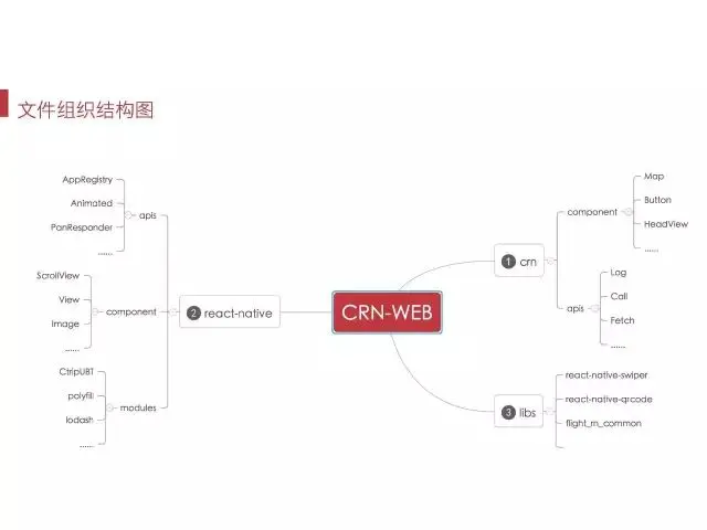 目前我们的框架总共提供了150多个component和API。其中我们自己扩展的CRN component大概有50个,涉及到react-native的API有30多个,react-native component有40个,module的其它功能组件有30个左右。