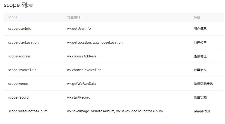 4、我这里只打印出了userInfo和userLocation的接口返回信息,当然你还可以打印其他的信息,只要你之前调用过这些微信API,详见微信的scope表:https://mp.weixin.qq.com/debug/wxadoc/dev/api/authorize-index.html
