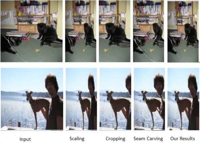 本论文与韩国KAIST大学一起合作。随着数字显示设备的普及,随之而来的一个问题就是同一张图片在不同分辨率设备上显示效果的适应性问题。传统的线性缩放,或是简单裁剪等方法会带来诸如图片内容扭曲、内容丢失等负面效果。