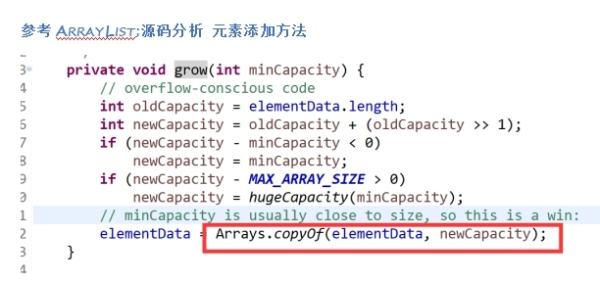其中自动扩容选择了Arrays.copyOf(elementData, newCapacity) 数组的拷贝实现。