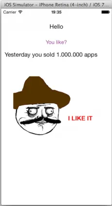 downloadiLikeIt项目,我们将会在整个教程中使用它。 在Xcode 5中打开该项目,并在模拟器上运行,你将会看到以下界面: