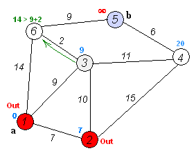3. 对其余 T 中顶点的距离值进行修改:若加进 W 作中间顶点,从 V0 到 Vi 的距离值缩短,则修改此距离值