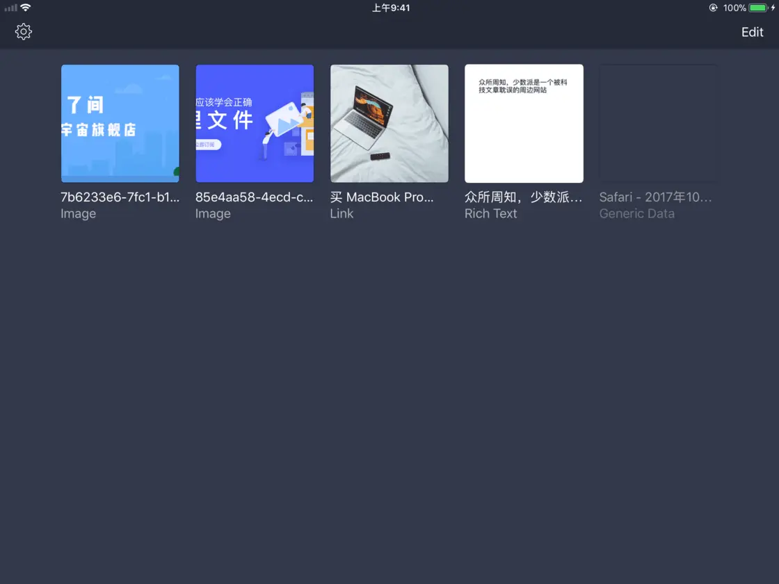 Dropped 的界面设计让人想起 iPhone 上的系统相册,据说它的字体、图标——乃至乃至奇宽无比的「额头」,都是学着原生应用来的。想要一款最契合 iOS 11 风格的 Shelf App?那就是 Dropped 了。