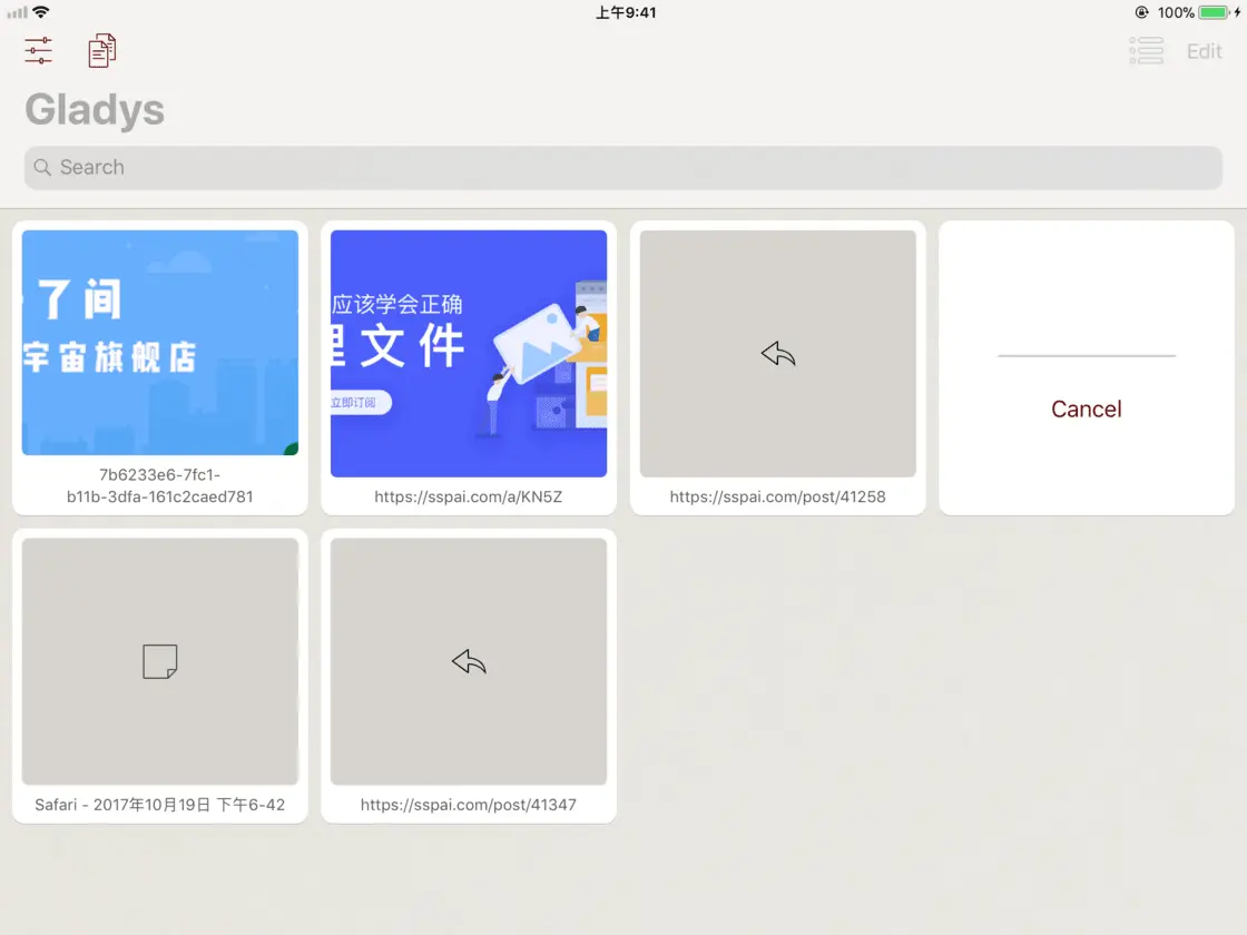 当我们谈颜值的时候,说 Yoink 颜值高,Gladys 一定不服,它那一张张精致的圆角卡片的确赏心悦目。可惜后者的预览功能只能说差强人意,不少文本、链接只能显示一个对应标志。