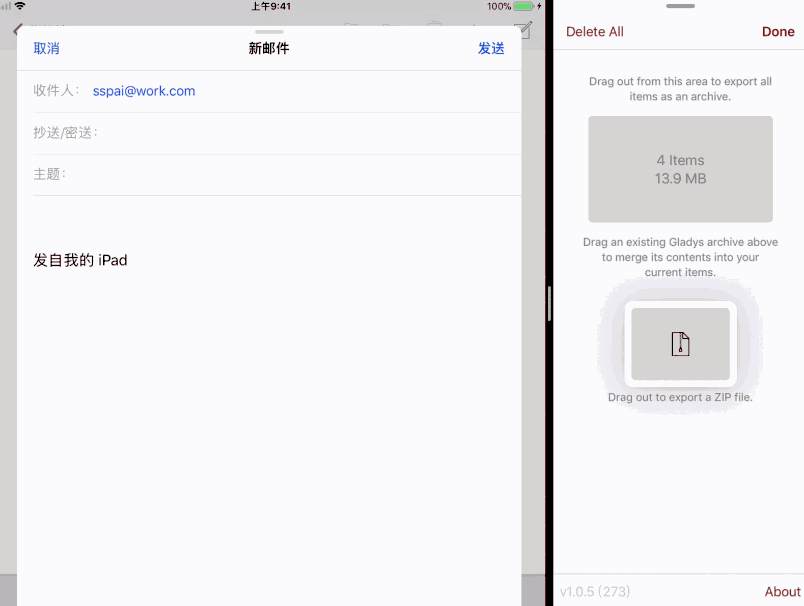 但我用得最频繁的,还是它的压缩功能。我可以直接从 Gladys 里拖出一个压缩文件,这在发邮件的时候很方便,不用挨个添加文件。如果未来能提高压缩率就更好了。