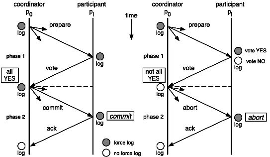 其中,如果有任何一个数据库否决此次提交,那么所有数据库都会被要求回滚它们在此事务中的那部分信息。这样做的缺陷是什么呢? 咋看之下我们可以在数据库分区之间获得一致性。
