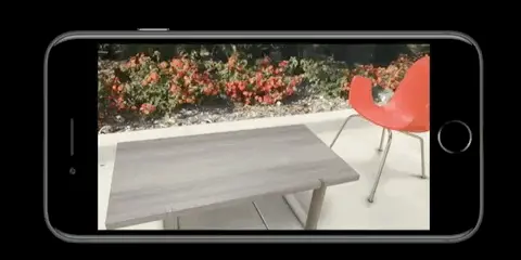 WWDC 的一段视频对 ARKit 做了一个整体的概述,我看过后,最简单的概括总结起来就是这样 — ARKit 不仅是简单的在摄像头屏幕上显示一些增强内容,它还提供你了一整套追踪和定位能力,比如你在 AR 场景中放置一个虚拟桌子,它不仅能将这个桌子显示在你的屏幕上,还能够随着你手机的移动,显示桌子的各个角度,如下所示: