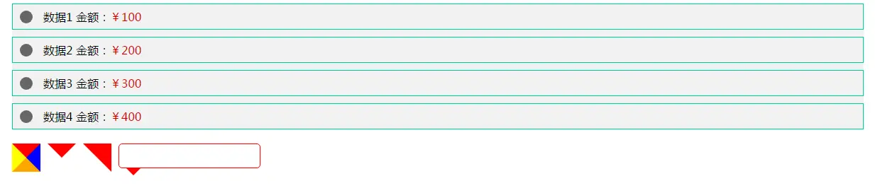 <li class="list"><span class="checkbox"></span>数据4 金额:<span class="money">400</span></li>