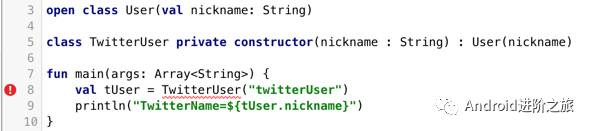 在这种情况下,Expr类有一个只能在类内部调用的private构造方法,你也不能声明一个sealed接口,因为如果这样做,Kotlin编译器不能保证任何人都不能在Java代码中实现这个接口。