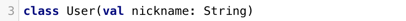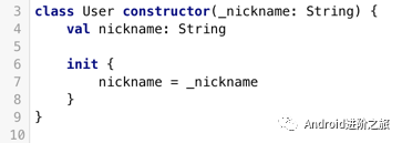 如果属性用相应的构造方法参数来初始化,代码可以通过把val关键字加在参数前的方式来进行简化。