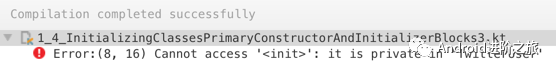 需要注意:如果类没有主构造方法,那么每个从构造方法必须初始化基类(通过super关键字)或者委托给另一个这样做了的构造方法(通过this关键字),也就是说,每个从构造方法必须以一个朝外的箭头开始,并且结束于任意一个基类构造方法,就像上面例子中Button的带有两个参数的从构造方法所做的那样。