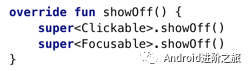 当需要调用一个继承的实现,可以使用与Java相同的关键字 super,并在后面的尖括号中指明父类的名字,最后是调用的方法名: