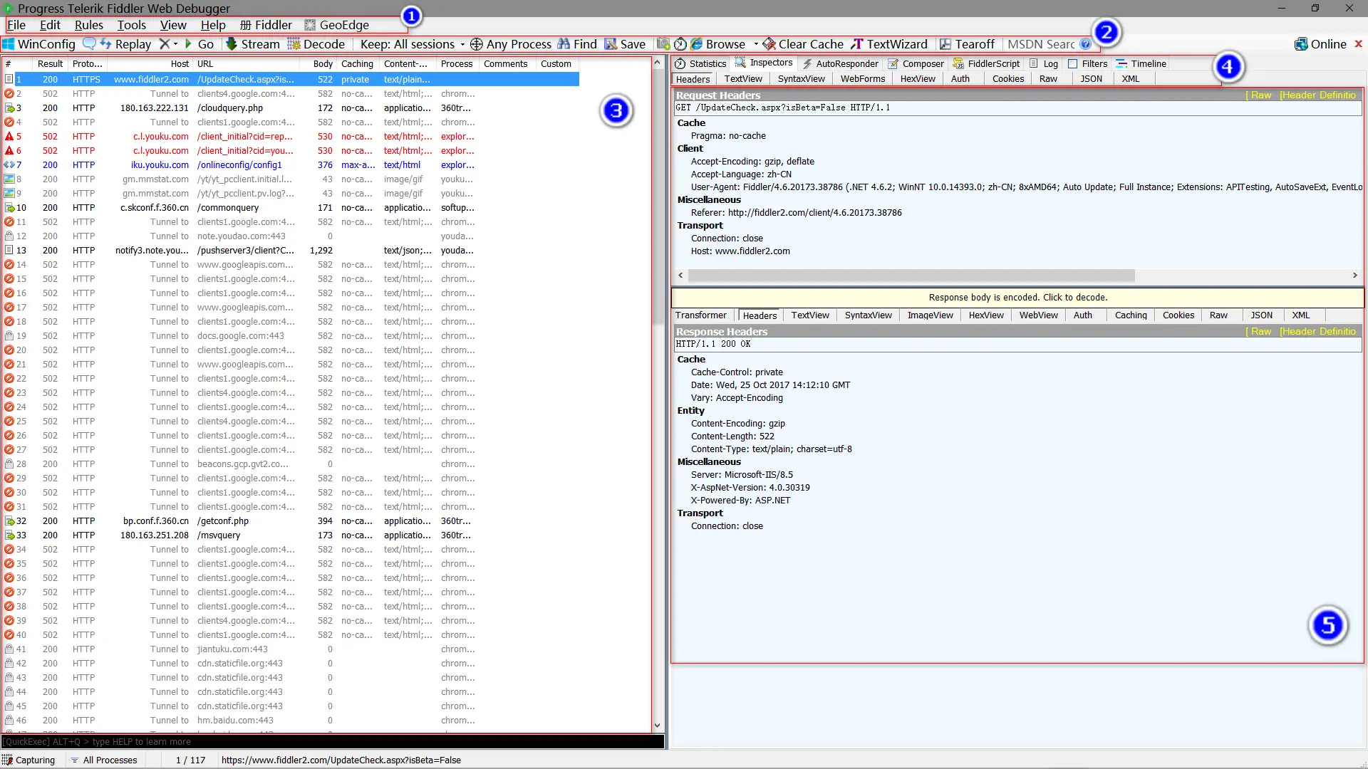 双击打开我们的fidder软件,会看到如下的界面: